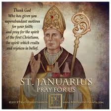 “Jesus journeyed from one town and village to another, preaching and proclaiming the good news of the kingdom of God. Accompanying him were the Twelve and some women who had been cured of evil spirits and infirmities. Mary, called Magdalene from whom seven demons had gone out, Joanna the wife of Herod’s steward Chuza, Suzanna and many others, who provided for them out of their resources.” Luke 8:1-3. St. Januarius said, “It is better for me to die for Christ than to reign over the whole earth.”